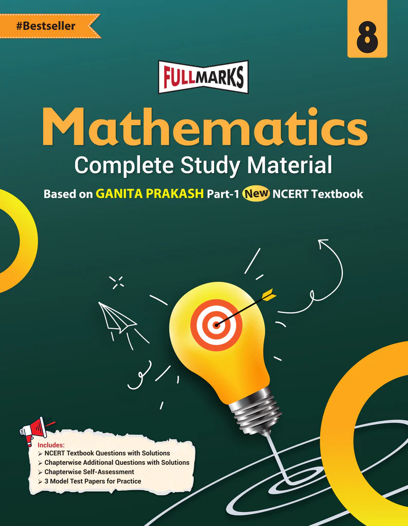 “Full Marks Mathematics Ganita Prakash Part-1 Class 8” is a comprehensive study guide designed according to the latest NCERT syllabus and CBSE guidelines for the 2026 exams. This all-in-one resource offers chapterwise summaries, step-by-step solved examples, previous years’ questions (PYQs), competency-based questions (CBQs), and sample papers. It helps students understand concepts thoroughly while also building speed and accuracy for exams. With easy-to-follow explanations and plenty of practice material, this book ensures that Class 8 students are exam-ready and confident in tackling every question type.