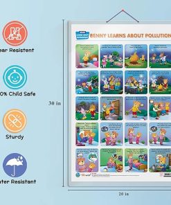 Introducing the 2-in-1 Benny Learns About Pollution, and Benny Learns Not to Litter Chart, a valuable tool for teaching children about environmental responsibility and the impact of pollution! This chart measures a convenient 20″ x 30″ inches, perfect for homeschooling. Crafted for durability, the chart is made from a non-tearable and waterproof material, ensuring it can withstand frequent use and accidental spills. Its double-sided laminated surface adds an extra layer of protection, guaranteeing its longevity and allowing for worry-free learning. One side of the chart focuses on Benny Learns about Pollution, guiding children to understand the different types of pollution and their environmental effects. Through engaging visuals and relatable examples, children will learn about air, water, and land pollution and the importance of conservation and sustainable practices. Flipping the chart over reveals Benny Learns Not to Litter, where children explore the significance of proper waste disposal. They will gain insights into the consequences of littering, learn about recycling and waste reduction, and discover ways to be responsible stewards of the environment. With its colourful illustrations and simple explanations, this chart promotes environmental awareness and empowers children to make positive changes. It is a valuable resource for homeschooling, facilitating discussions about pollution and instilling a sense of ecological responsibility. The 2-in-1 Benny Learns About Pollution, and Benny Learns Not to Litter Chart is a durable and user-friendly tool that encourages children to become environmental advocates. Inspire a commitment to a cleaner and healthier planet with this comprehensive chart, fostering a sense of ecological responsibility in young learners.