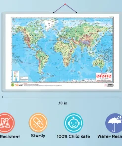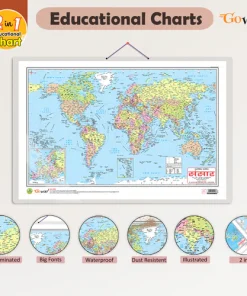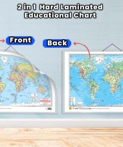 “Introducing Gowoo’s “”2-in-1 World Political and Physical Map”” in Hindi, a versatile and informative chart that combines the world map’s political and physical aspects. With a size of 20*30 inches, this chart offers a detailed representation of countries, capitals, major cities, oceans, mountains, and other geographical features in Hindi. Designed for durability, the chart is made from a non-tearable and waterproof material, ensuring it can withstand frequent use. The dust-resistant lamination protects it from dirt and damage, preserving its clarity and legibility over time. The use of a big font enhances readability, making it suitable for all age groups. The chart is made from 300 GSM recyclable material, demonstrating Gowoo’s commitment to sustainability. The highlights on the map draw attention to important landmarks and geographical details, facilitating easy understanding and exploration. Whether you’re a student, traveller, or geography enthusiast, Gowoo’s 2-in-1 World Political and Physical Map in Hindi is an invaluable resource for expanding your knowledge of global geography in your native language.”