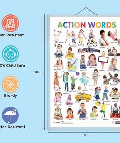 The hard laminated Action Words chart is an indispensable educational tool, generously sized at 30 inches in width and 20 inches in height. This chart facilitates early language development and introduces young learners to action words (verbs) engagingly and interactively. Featuring bold and large fonts, this chart ensures that action words are easily visible and legible from a distance, making it an ideal addition to classrooms, playrooms, and homeschooling environments. The clear, oversized text assists children in comprehending and recognizing action words, laying a solid foundation for language acquisition. Crafted with resilience in mind, this chart is water-resistant, tear-resistant, and dust-resistant, allowing it to withstand the rigours of daily use. It is built to endure spills, handling, and the wear and tear of educational settings, ensuring its longevity and practicality. Safety is paramount, and this chart is thoughtfully designed to be 100% child-safe, adhering to stringent safety standards. Parents and educators can trust its safety and reliability for children of all ages. Each action word on the chart is accompanied by realistic pictures, providing a visual context to aid understanding. This enhances language comprehension and fosters a tangible connection to the actions and objects represented. In summary, the hard laminated Action Words chart is a durable and child-safe educational resource that promotes early language development by introducing action words interactively and engagingly. Its large fonts, resilience, and realistic pictures make it an essential tool for educators, parents, and young learners embarking on their language learning journey.