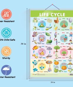 The Life Cycle chart is a poster designed to help children understand the different stages of life cycles in various organisms. Measuring 20″X30″ inches, the chart is large enough to display the multiple stages in a clear and organised manner, making it ideal for use in a classroom or at home. The chart is double-sided and laminated, making it durable and tearing-resistant. It is also waterproof, which means it can be easily cleaned if it gets dirty. The Life Cycle chart is designed to be informative and educational, with each stage of the life cycle of various organisms depicted through clear illustrations. The poster is an excellent tool for parents, teachers, and caregivers who want to help children understand the complex processes of life cycles in a fun and engaging way. It visually represents the life cycle stages of different organisms, such as plants, animals, and insects, making it easier for children to grasp how life changes over time. With its durable construction, straightforward design, and informative content, the Life Cycle chart is an essential resource for anyone interested in teaching children about the natural world and its processes.