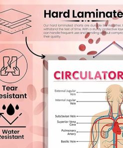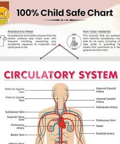 GOWOO presents THE CIRCULATORY SYSTEM in 20 x 30 inches. Embark on an enlightening journey through the human circulatory system with our meticulously designed chart. This educational masterpiece presents detailed diagrams of all the internal veins and arteries within the human body, accompanied by clear labelling of each blood vessel’s name. With comprehensive coverage of the circulatory network, learners will understand how blood travels through the body, delivering oxygen and nutrients to every tissue and organ. Engaging visuals aid in comprehending the intricate pathways and connections that facilitate proper blood flow. Perfect for medical students and anatomy enthusiasts, this chart is an invaluable resource for classrooms and self-guided study. Its hard-laminated surface ensures durability, making it a reliable study aid that will stand the test of time. As learners immerse themselves in the complexities of the circulatory system, they will develop a profound appreciation for the vital role of veins and arteries in sustaining life.