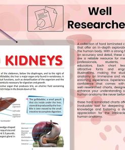 GOWOO presents LIVER AND KIDNEY CHARTS in a 20″ x 30″ inches. Embark on an enlightening journey through the vital organs of the liver and kidney with our meticulously designed chart. This educational masterpiece showcases the functions of the liver, offering insights into its role in metabolism, detoxification, and bile production. High-quality diagrams with clear labelling unravel the liver’s complexities, making it an ideal resource for medical students and health enthusiasts. Continuing its comprehensive coverage, the chart delves into the features of the stomach and highlights the difference between a healthy liver and a fatty liver. Learners will gain a profound understanding of the liver’s susceptibility to fat accumulation and its impact on its functions. The chart transitions to the kidney, presenting the adrenal glands’ structure and the intricate internal organisation of this essential organ. Expertly drawn visuals aid students in comprehending the kidney’s role in filtration, regulation of electrolytes, and maintaining fluid balance. Designed to foster interactive learning, this chart is a valuable resource for medical classrooms and self-guided study. Its comprehensive content and high-quality visuals inspire curiosity and encourage further exploration into the complexities of liver and kidney functions.