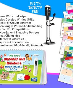 Introducing “My First Alphabet and Numbers Busy Puzzle Book” by GOWOO! This vibrant and interactive educational tool is designed to engage and entertain young learners while they explore the exciting worlds of letters and numbers. Measuring 8.9×11.5 inches, this book is perfectly sized for little hands to hold and manipulate. With its innovative velcro activity design, children can easily attach and detach puzzle pieces, enhancing their fine motor skills and hand-eye coordination. But that’s not all – this versatile book also functions as a write and wipe task book! Equipped with special pages that allow children to practice writing their letters and numbers, they can erase and start again with the complementary pen provided. With its durable construction and engaging activities, “My First Alphabet and Numbers Busy Puzzle Book” offers hours of fun and learning for preschoolers and early learners. Bring the excitement of learning to your child’s fingertips with this fantastic educational resource from GOWOO!