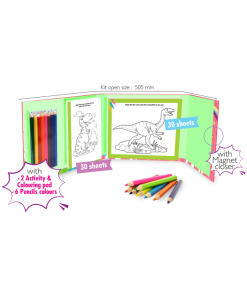 Introducing the “Foldable Colouring Activity Kit: Dino Curious To Play,” an engaging and interactive pack designed for young dinosaur enthusiasts. This kit includes two activity and coloring pads featuring exciting dino-themed illustrations, along with eight vibrant color pencils. Perfect for on-the-go fun, the foldable design allows easy portability and storage, making it ideal for travel or outings. Children can explore their creativity as they color in their favorite prehistoric creatures and complete engaging activities. With its durable construction and captivating content, this activity kit promises hours of entertainment and imaginative play for curious minds fascinated by dinosaurs.