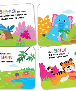 Jungle Friends Story Shapes Board Books, A pack of 4 chunky board book with 10 pages each can play and learn animals as they become 3D animals. Comes in an attractive play along and carry packaging. A perfect gift for your child. He would love the beautifully illustrated stories for age 2 to 5 years old.