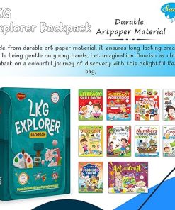 “The LKG Explorer Backpack is a comprehensive learning package curated for children entering Lower Kindergarten (LKG). This set includes ten meticulously crafted books, forming a complete curriculum tailored to engage and educate young learners at the LKG level. These books feature durable covers made of high-quality materials and are accompanied by premium-grade paper, ensuring durability and longevity to withstand the enthusiastic handling of young explorers. Within this educational ensemble, children will embark on an exciting learning journey through diverse subjects and themes designed to stimulate their growing minds. Each book has vibrant illustrations, interactive exercises, and age-appropriate content meticulously structured to nurture cognitive, linguistic, and motor skills. These books cover a spectrum of essential concepts, including numbers, letters, shapes, colours, basic vocabulary, introductory mathematics, and more. They are an invaluable resource for educators and parents, facilitating a holistic approach to early childhood education. With its collection of carefully crafted books, the LKG Explorer Backpack stands as an enriching tool to lay a solid educational foundation while igniting a passion for learning in young minds entering the Lower Kindergarten stage.”