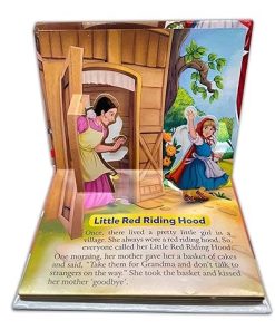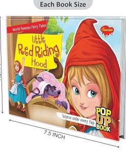 “The “”POP UP Book World Famous Fairy Tales: Little Red Riding Hood”” is an enchanting literary treasure that whisks young readers away into this beloved fairy tale’s timeless and suspenseful world. With its sturdy board glossy cover and impeccable perfect binding, this book is not just a storybook but a cherished keepsake designed to endure the eager hands of young readers, ensuring it becomes a treasured part of their childhood. What truly sets this book apart is its captivating and visually stunning illustrations that vividly depict the story of Little Red Riding Hood. Each page is adorned with vibrant and imaginative artwork that brings to life the enchanting forest, the charming Little Red Riding Hood, and the cunning wolf. The colours are rich and evocative, and the details are meticulously crafted, making every page a visual delight. However, the true enchantment of this book unfolds with its intricate pop-up features. As readers delve into the story, they are transported into the world of Little Red Riding Hood through three-dimensional pop-up scenes. They can watch in awe as Little Red Riding Hood sets off on her journey, encounters the wolf, and ultimately faces her fateful encounter, all in stunning pop-up form. These interactive elements engage the senses and immerse the reader in the story’s suspense and moral lessons. “”POP UP Book World Famous Fairy Tales: Little Red Riding Hood”” is more than just a book; it’s an immersive experience. It encourages a love for reading, sparks the imagination, and imparts valuable life lessons about caution, trust, and the importance of making wise choices. Whether it’s a child’s first introduction to Little Red Riding Hood or an adult’s nostalgic return to a cherished tale, this book offers an unforgettable storytelling experience that bridges generations.