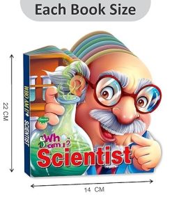“Scientist: Who Am I?” is an enchanting die-cut board book that invites young readers to explore the world of scientific inquiry. Its imaginative die-cut design on the cover, shaped like a curious scientist, immediately captures children’s imaginations and beckons them into the exciting universe of science. Crafted from durable 700 gsm tear-resistant paper, the book can withstand frequent readings and tactile exploration. Its water-resistant pages are designed to endure spills, making it suitable for various reading settings and ensuring the illustrations remain vibrant. The book’s captivating illustrations vividly depict the world of scientific discovery, enhancing early language development by connecting words with images, enriching children’s vocabulary and comprehension skills. Its narrative, guided by a scientist’s introspective thoughts on identity, encourages reflection on curiosity, innovation, and personal roles, providing caregivers and educators with a valuable platform for meaningful conversations. In summary, “Scientist: Who Am I?” seamlessly combines interactive exploration with valuable content, making it an essential tool for early education. It introduces children to the world of science, nurtures their curiosity, and encourages imaginative journeys, leaving a lasting impression on young minds.